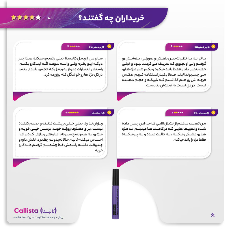 آرایش چشم و مژه از گذشته تا امروز یکی از مهمترین روشها برای زیبایی صورت بوده و نشاندهنده اهمیت ما به آرایش چشم است. مژهها نقش کلیدی در جذابیت چشمها دارند و یکی از پرکاربردترین ابزارها برای فرم دادن به آنها، ریمل است. ریمل حجمدهنده کالیستا مدل Extend Volume با رنگدانههای غلیظ مشکی، ماندگاری مناسب و قابلیت پرپشت، بلند و خوشحالت کردن مژهها، به زیبایی هرچه بیشتر چشمان شما کمک میکند.