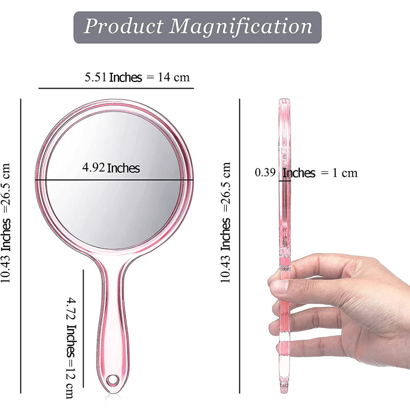 این مدل آینه یک محصول جهت استفاده به صورت دستی است که استفاده از آن بسیار راحت میباشد. این محصول یک آینه دو طرفه میباشد که یک طرف آن یک آینه ساده با کیفیت و طرف دیگر آن با بزرگنمایی 6x میباشد. قطر آینه 12.5 سانتی متر و طول ان 26.5 سانتی متر و طول دسته 12 سانتی متر میباشد.