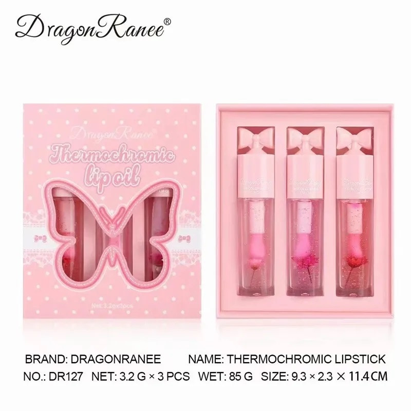 اگر به دنبال یک برق لب خاص، جذاب و دخترانه هستید، برق لبهای Dragon Ranee مدل پاپیون انتخابی بینظیر برای شماست! این مجموعه ۳ عددی با طراحی فانتزی، بستهبندی صورتی دلبرانه و ظاهر شفاف و گلدار، هر کسی را شیفته خود میکند.
