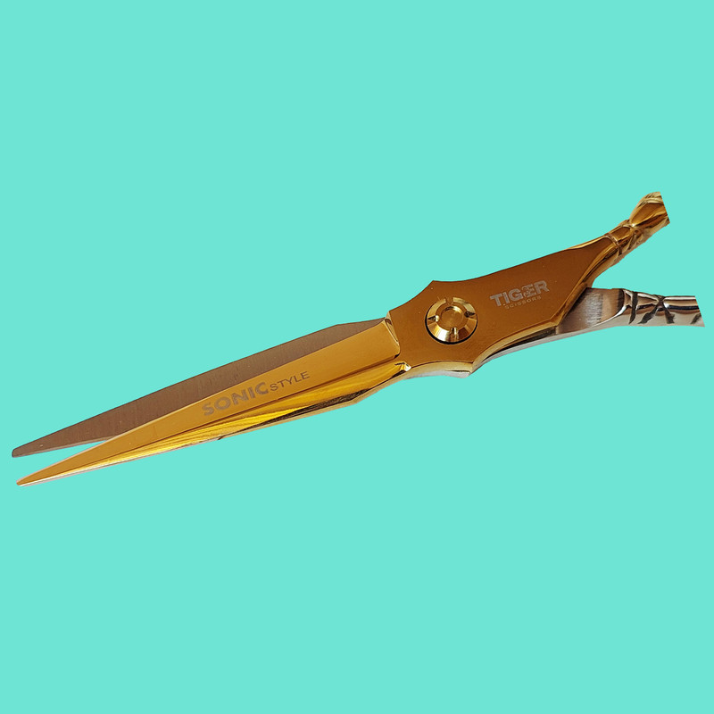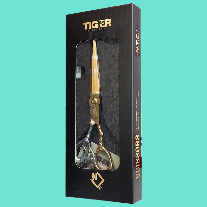 قیچی آرایشگاهی تایگر مدل SONIC، یکی از زیباترین و با کیفیت ترین قیچی های بازار است، این محصول که از تولیدات برند N.T.C است، بصورت دست ساز و با حداکثر دقت، با استفاده از متریالهای خاص تولید شده و در اختیار آرایشگران حرفه ای قرار می گیرد. تیزی لبه های قیچی به گونه ای است که هنگام چیدن مو اصلا برش مو زیر دستان شما احساس نمی شود، این مزیت یک قیچی حرفه ایست، چرا که ساعتها کار با قیچی، دستها را خسته می کند، ابزار حرفه ای، برای شما که دستان هنرمندتان هر روز و هر دفعه یک اثر هنری ایجاد می کند، لازم و ضروری است. ما لذت کار با یک ابزار دوست داشتنی را به شما که دوستتان داریم هدیه می کنیم. سایز این قیچی، 5.5 اینچ است، که بیشترین کاربرد را در بین قیچی ها دارد. نگهداری و مراقبت از این ابزار سالیان سال شما را از خرید مجدد بی نیاز می کند.