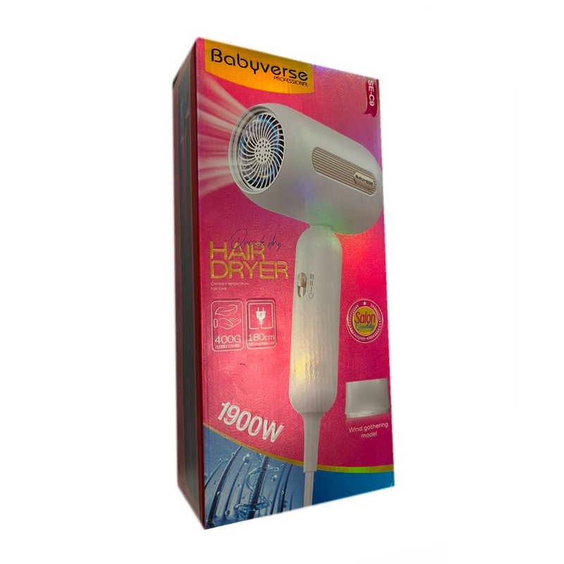 سشوار خانگی و مسافرتی بیبی ورس مدل SE-C9 بسیار خوشدست و جمع و جور می باشد. این سشوار 2 سرعته و قدرت آن 1900 وات و سشوار به راحتی قابل حمل و برای مسافرت انتخاب بسیار مناسبی است. طول سیم سشوار 180 سانتی متر و 1 عدد سری متمرکز نیز به همراه دارد.