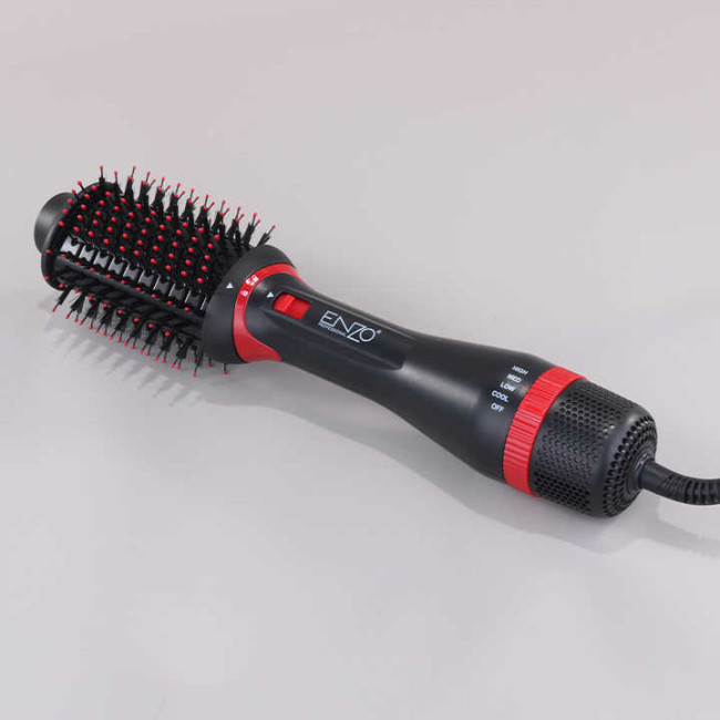 سشوار برس دار حالت دهنده انزو پروفشنال مدل en-6202 قابلیت گرمایشی در چهار حالت مختلف را دارد و همچنین به دلیل سرعت بخشیدن آرایش حالت دهی بهتری را هم در پی دارد، این محصول حرارتی برابر 1000 وات را دارد و مناسب افرادی است که می خواهند در حداقل زمان با سهولت به موهای خود بهترین حالت را بدهند و این سشوار دارای فناوری یون می باشد که مو ها را درخشان و لطیف می کند و همچنین از وز شدن آن ها جلوگیری می کند، سیم این سشوار چرخش 360 درجه دارد و همین امر استفاده از آن را بسیار راحت و ساده می کند.