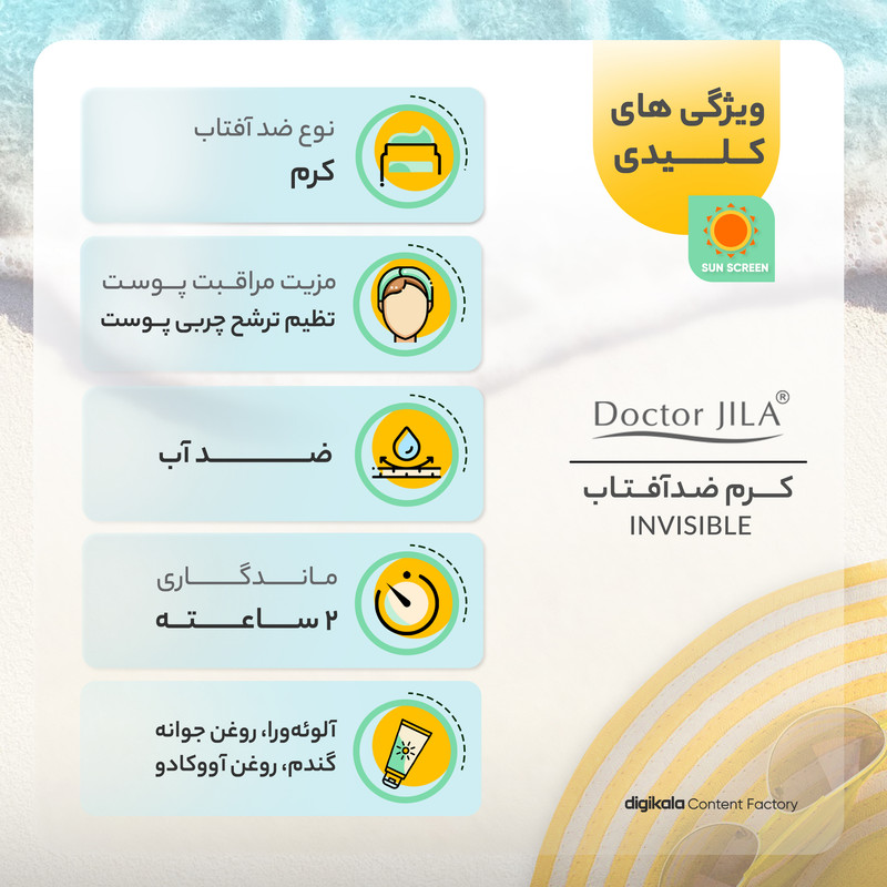 کرم ضدآفتاب دکتر ژیلا، مناسب برای استفاده بانوان و آقایان است و با بهرهگیری از ترکیبات طبیعی و موثر، به سلامت و شادابی پوست کمک میکند. اگر به دنبال یک ضدآفتاب قوی و موثر با خاصیت تنظیم ترشح چربی و محافظت کامل از پوست هستید، کرم دکتر ژیلا یک انتخاب بینظیر است که همواره شما را در برابر آسیبهای ناشی از آفتاب محافظت میکند.