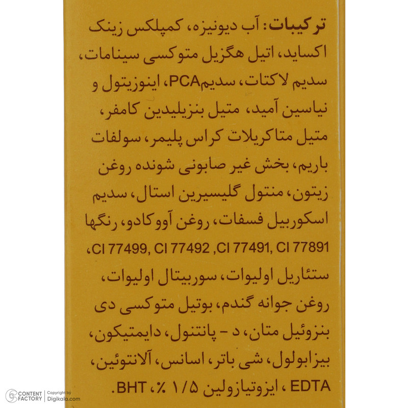 دستهبندی: کرم ضد آفتابمیزان رنگ: رنگینوع ضد آفتاب: کرمناحیه استفاده: صورت , گردنSPF: 35سازگار با پوستهای : خشک , معمولیحجم ضد آفتاب : 40 میلیلیترویژگیهای ضدآفتاب : محافظت کننده در برابر اشعه UVA , محافظت کننده در برابر اشعه UVBوزن : 50 گرمماندگاری : 2 ساعتنمایش بیشتر