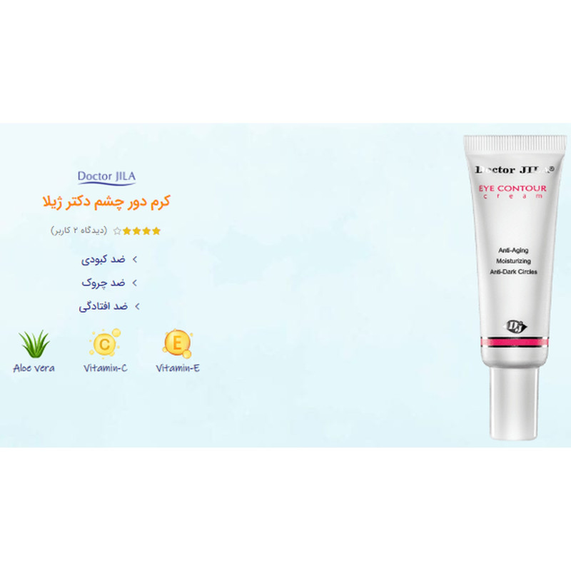 در کرم دور چشـم دکترژیـلا ترکیبـات ضـد چـروک (Anti-Aging)،روشـن کننـده، التیـام بخش و ضد کبـودی ارزشمنـدی بکـار رفتـه است که مهمتریـن آنهـا شامـل MRT، عصاره گیاه چای سبز و کریزانتلیس روغـن دانـه انگــور ویتـامیـن Eو C پـایـدار، MDI Complex و کـلاژن میباشدمرطوب کننده های طبیعی NMF (لاکتیل)، د- پانتنول، آلانتویین، روغن آووکادو و پروتئین هیدرولیز شده گندم اثرات مرطوب کننده و ضدالتهاب فوق العاده ای دارند که از خشکی و خارش پوست دور چشم جلوگیری میکنند. کمپلکس Q10 – ویتامین E موجود در فرآورده موجب کاهش چین و چروک و پیری پوست و کاهش اثر تخریب های اکسیداتیو پرتو UV مثل Photoaging میگردد و از افتادگی پوست جلوگیری مینماید. از سوی دیگر بعلت اثر در چرخه انـرژی (ATP) نقـش انـرژی دهنـده و شـاداب کننـده(Energizer) داشتـه و احساس خوشاینـدی را در کنـار اثـرات مطلوب فوق ایجاد خواهد کرد. خواهشمند است به بیمار تاکید شود که حتماً روزی سه بار به مدت حداقل 3ماه در اطراف چشم استفاده نماید و از سمت داخل به بیرون پخش شده با نوک انگشت به آرامی ضربه زده شود تا به جذب کرم کمک نماید