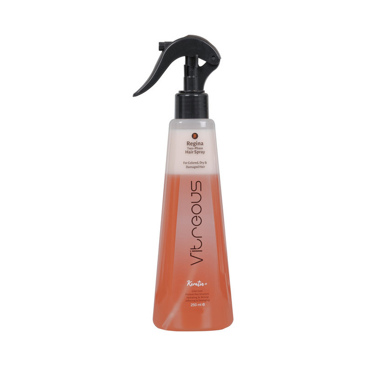 رجینا یک اسپری دوفازی حاوی روغن آرگان و کراتین است که در لطافت، درخشندگی، رطوبت رسانی، تقویت، ترمیم و حالت پذیری موی سر موثر بوده و از مو در برابر شوک ها و آسیب های حرارتی محافظت می نماید.