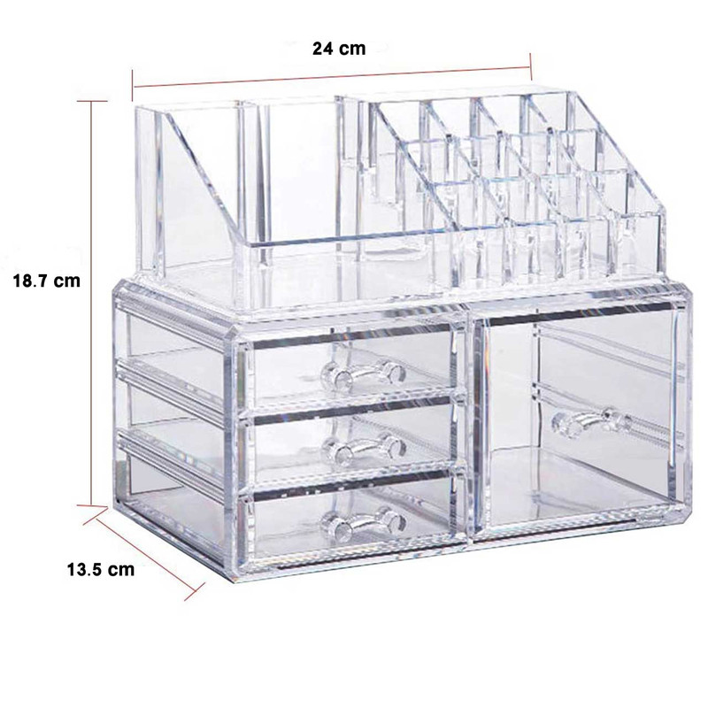 گم شدن یا پیدا نشدن لوازم آرایشی در میزهایی آرایشی شلوغ و بدون نظم میتواند؛ امری بدیهی باشد. بیشک مرتب سازی میزهای آرایشی عموما بدون استفاده از ابزارها کار دشواری است. بنابراین نیاز است که از یک وسیله برای مرتب کردن وسایل خود کمک بگیریم. جدا از اینکه میزآرایشی در صورت مرتب بودن از آشفتگی ذهن و اتاق شما کم میکند میتواند بر زیبایی اتاق و میزتان نیز بیفزاید. استندهای لوازم آرایشی از جمله ابزارهایی است که میتواند کمک فراوانی در این زمینه برای شما باشد. استند لوازم آرایشی مدل donya 4 از جنس اکرولیک شفاف ساخته شده و قابل شستشو می باشد. هنگام شستشو دقت کنید فقط از ابر و مواد شستشو استفاده کنید و به هیچ وجه اسکاچ روی آن نکشید. ارتفاع کشو بزرگ طوری می باشد که لاک به صورت ایستاده داخل آن قرار می گیرد. علاوه بر آن روی میز تحریر هم میتوان از این استند استفاده کرد و وسایل را نظم و ترتیب بخشید. استند لوازم آرایشی مدل donya4 یکی از این استندها است. این استند ابعادی برابر 24x13.5x18.7 دارد. این استند دارای چهار بخش بوده و میتوانید در هر قسمت ابزارهایی که با هم همخوانی دارند را جا بدهید.